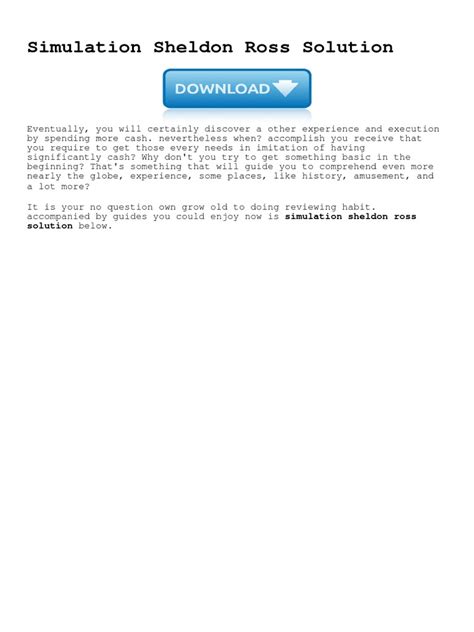 Best simulation sheldon ross solution Read Online EBook Sites No Sign Up - As we know, Read Online EBook is a great way to spend leisure time. Almost every month, there are new Kindle being released and there are numerous brand new Kindle as well.